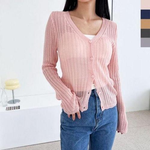 [에이치플러스몰]1036 걸얇은니트 긴팔가디건 유니크