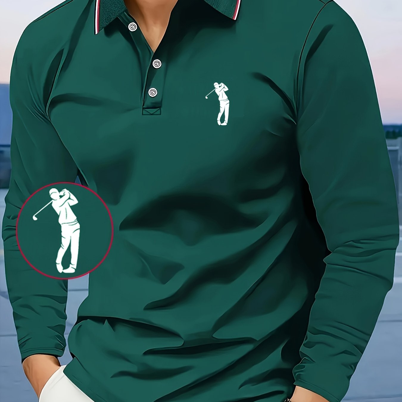 TEMU C8-528 새로운 하이엔드 컬러블록 질주하는 말 패턴 남성용 프린트 긴팔 셔츠, 캐주얼 스포티 패션 남성 상의, 편안하고 통기성 좋은 원단, 활용도 높은 레귤러 핏 버튼넥 골프 셔츠, 테니스 훈련 비즈니스 풀오버