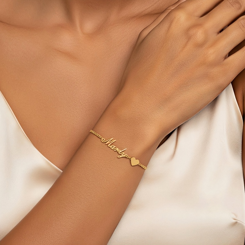 TEMU 1개 맞춤 여성 개인 맞춤 이름 하트 팔찌, 맞춤 금도금 스테인리스 스틸 섬세한 글꼴 팔찌, 특별한 신부 들러리 선물, 발렌타인데이 선물, 엄마 생일 선물