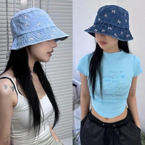 리본 스타테일벙거지 연청 모자 데님 여성 여름 워싱 WFIJXR4
