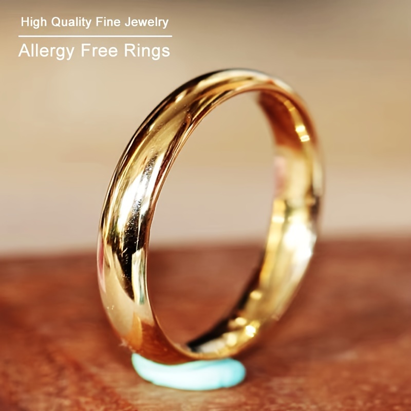 TEMU 1개 패션 18K 금도금 4mm 폭 골든 304L 스테인리스 스틸 약혼 결혼 반지 여성 및 남성용, 발렌타인데이 크리스마스 선물 주얼리, 배터리 없음