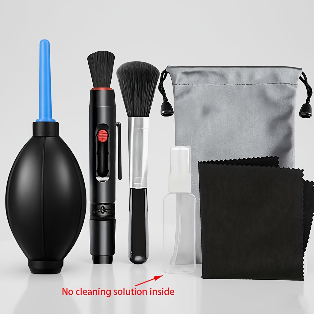 TEMU 6개 휴대용 DSLR 카메라 청소 키트 (스프레이 병 포함, 세척액 미포함), 청소 펜, 브러시, 블로어, 렌즈 천 및 보관 가방, SLR/DLSR/미러리스 카메라 청소에 적합, 휴대용 및 인체공학적 디자인