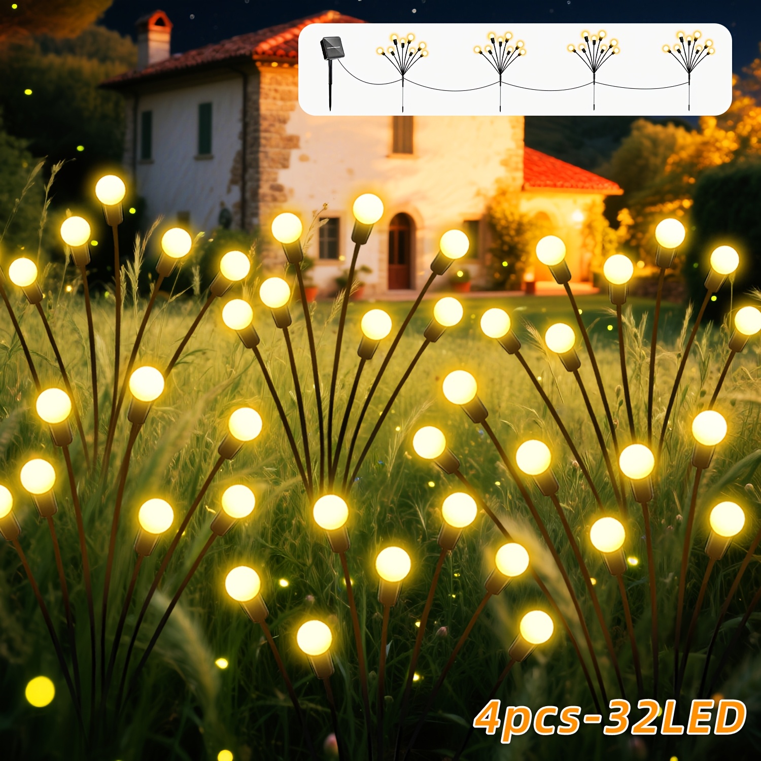 TEMU 4개, 태양광 파이어플라이 조명, 32 LED 정원 장식등, 야외 스윙 페어리 라이트 스트링, 8가지 모드, 조경, 테라스, 잔디밭, 화단, 정원길, 크리스마스 장식용 IPX4