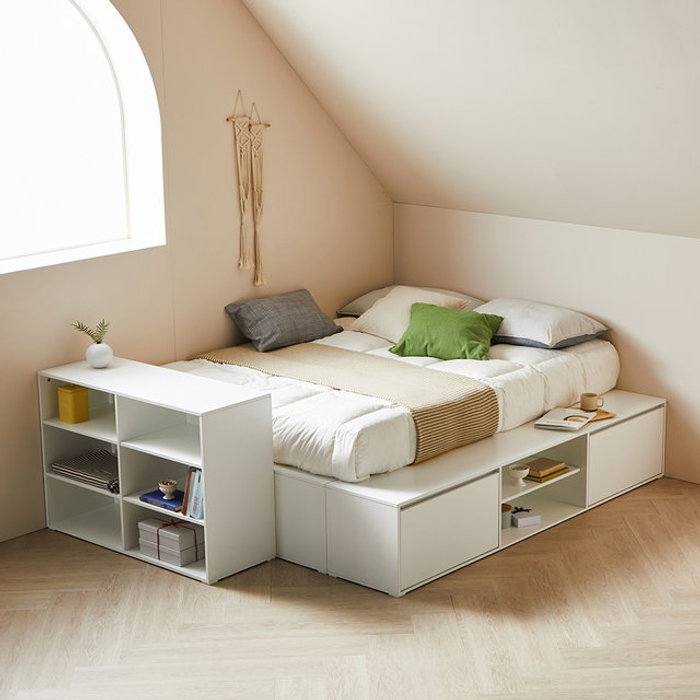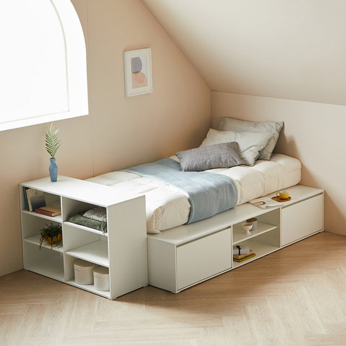 장인가구 [비밀특가] 버크 모듈형 빅수납 침대 슈퍼싱글 익스텐션 3단 선반장 1100