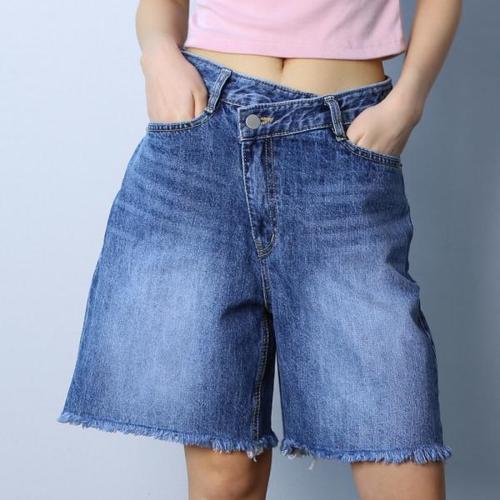 [파라노말샵]데님 난스판 언발 컷팅 4부 팬츠 반바지 (파라노말샵)