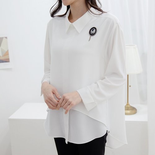 [드리다] DB21109 엄마옷 여성 카라 루즈핏 이중 쉬폰 빅사이즈 블라우스 40대 미시옷 50대 중년여성