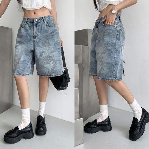 [신상오픈런]여자 데님 5부 카모 버뮤다 워싱 팬츠