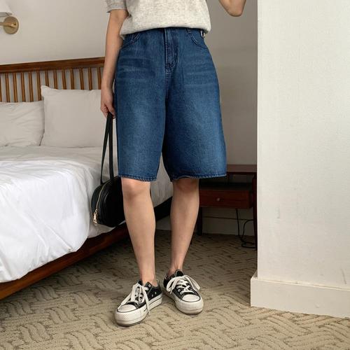 와이드 2색 여름 5부 데님팬츠 A라인 청반바지 여자 (HSJ-WFKBXIX)