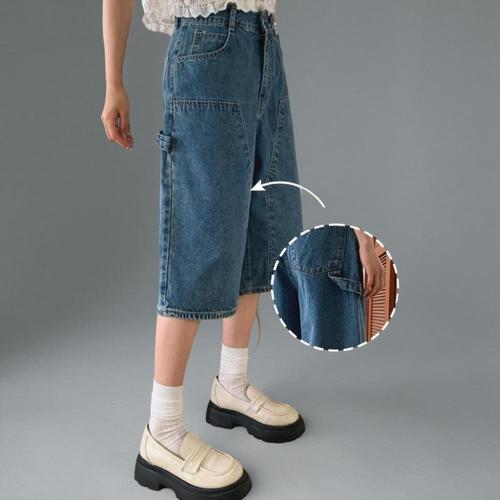 [미라클세븐]여성 스트리트 스타일 스티치 와이드핏 5부 데님 반바지
