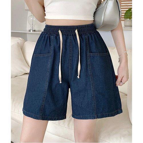 중년 여성 여름 데님 반바지 캐주얼 봄 여름 하이웨이스트 와이드 반바지 루즈핏 데일리 5부 데님 반바지 JZZN