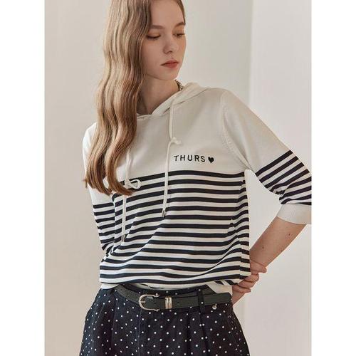 [마쟈]스트라이프 5부 반팔 후드 니트