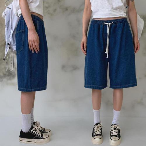 [옷자락]여성 남성 5부 핀턱 와이드 데님 반바지