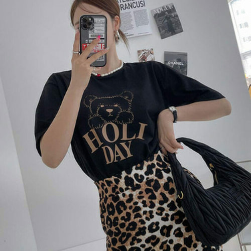 에르디테 / 곰돌이 레터링 루즈핏 5부 반팔 롱 면 100 티