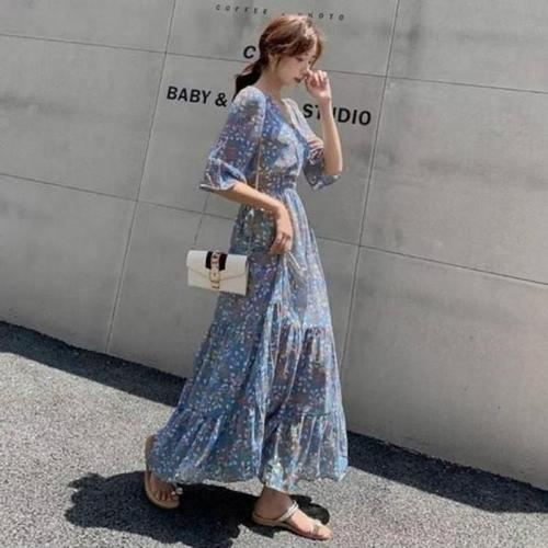 [라일리여성의류] Rly 꽃무늬 러플 시즌 5-부 롱드레스업 허리고무줄