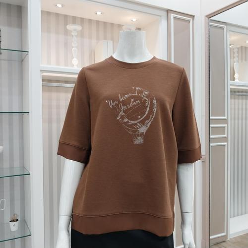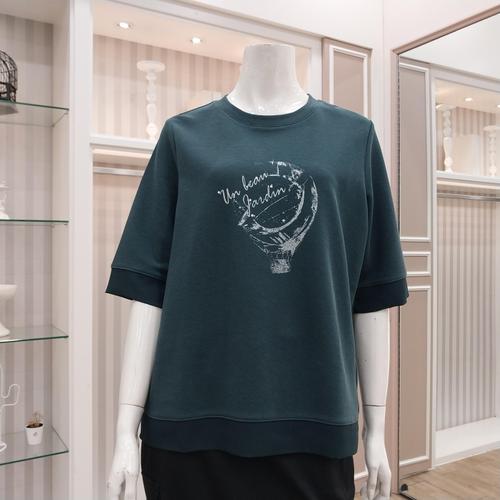 [프렐린]쉬폰 배색 프린트 5부소매 티셔츠 RTP253S30_HDD
