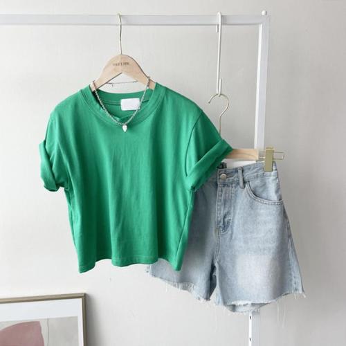 에르디테 / 여성 면 기본 세미 크롭 5부 반팔 티 20컬러