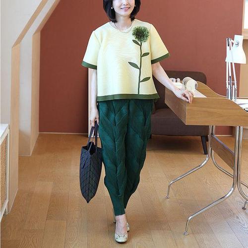 [쉬즈마담]P91984 포레스트 엠보 플리츠 팬츠 50대엄마옷