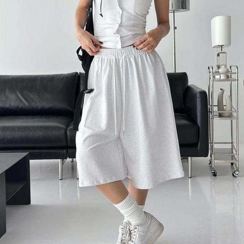[옷자락]여성 와이드핏 6부 트레이닝 반바지 밴딩 패치