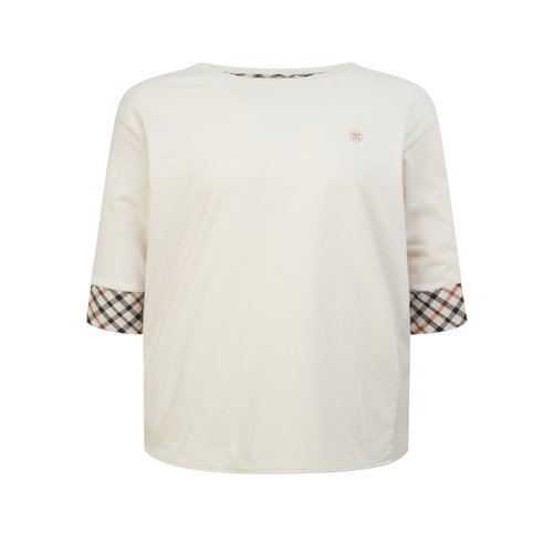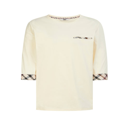 [스테디셀러] 베이지 체크 배색 면 혼방 7부 소매 티셔츠 (WKTS5BU01I1)