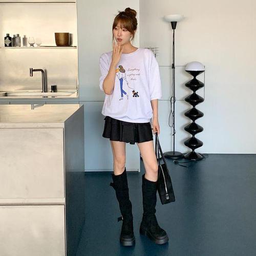 [옷자락]여성 키치무드 프린트 코튼 7부 라운드넥 맨투맨
