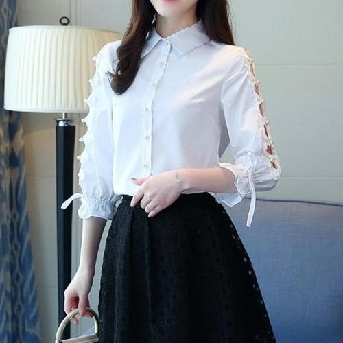 [엄지척]간절기 여성 레이스 자수장식 소매 7부 블라우스 셔츠_19646089_667501