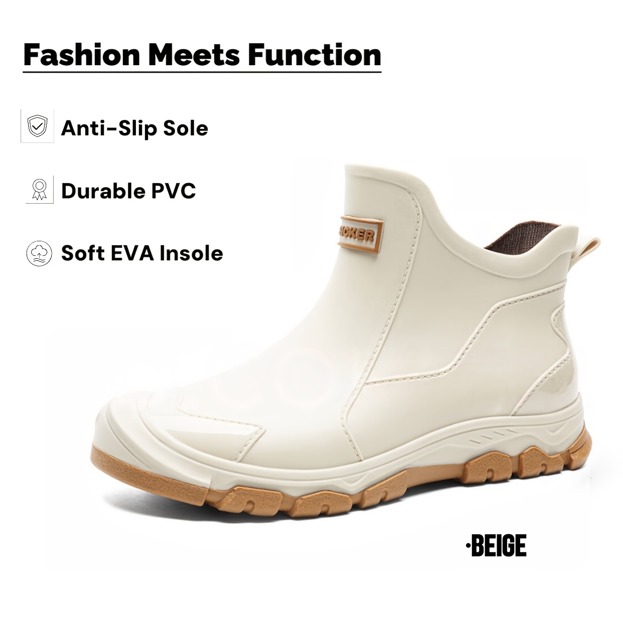 TEMU 패션 레인 부츠 | 남녀공용 미끄럼 방지 앵클부츠, 전체 사이즈 구매 가능. 사계절용, 가볍고 편안함, 데일리웨어, 야외 활동, 비오는 날, 진흙길, 음악 페스티벌 및 캠핑 여행용. 세척이 간편함 | 슬립온 스타일