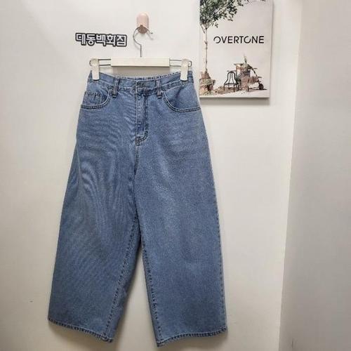 8부 연청 워싱 벌룬 와이드 데님 팬츠 3size