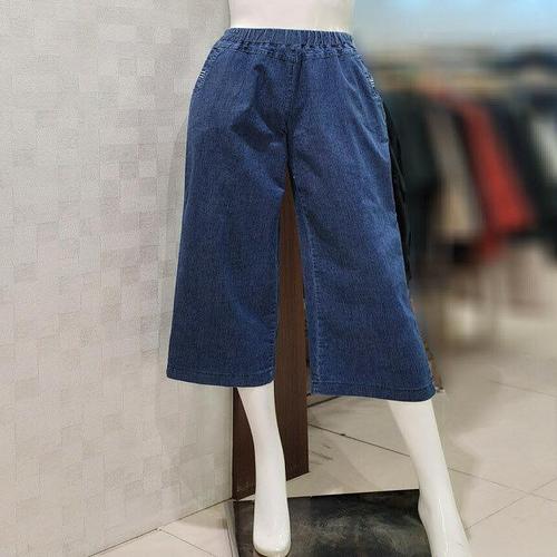 [옷자락]여자 봄 캐주얼 허리밴딩 와이드핏 8부 데님팬츠