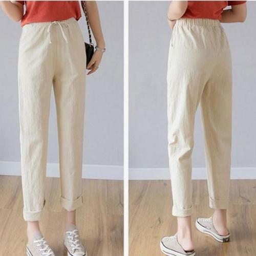 여성 린넨 바지 캐주얼 봄 가을 하이웨이스트 9부 와이드 팬츠 빈티지 슬랙스 면 마 팬츠 루즈핏 린넨 팬츠 CY