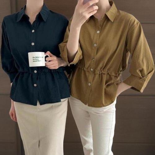 [신상오픈런]여성용 코튼 레이온 허리 조절 9부 셔츠 스타일 블라우스