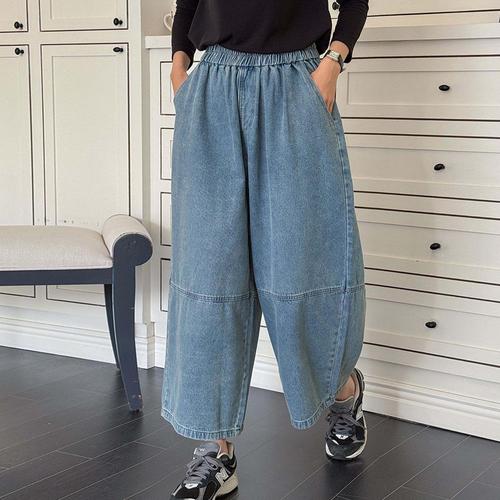 [옷자락]여자 가을옷 절개 벌룬 와이드핏 9부 통 밴딩 청바지