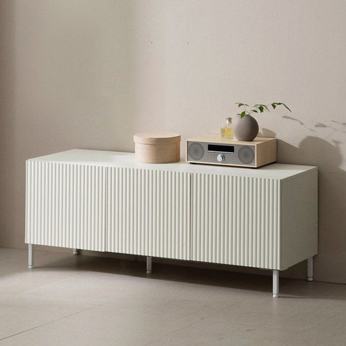 인터데코 화이트 세로결 패턴 거실장 (다리형) 135cm TP917
