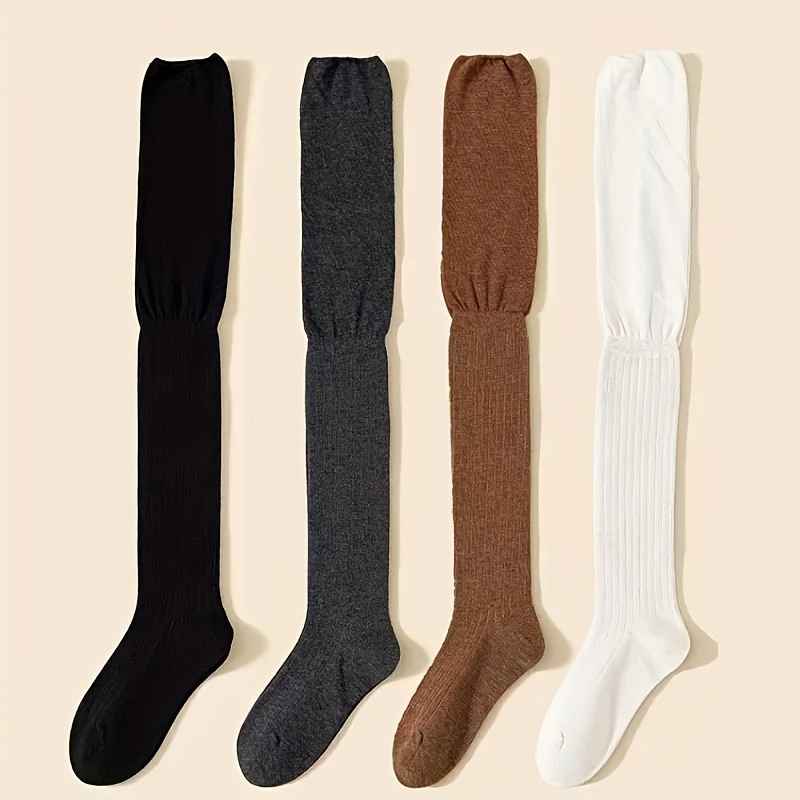 TEMU 4켤레 무릎 길이 양말 - 높은 탄성, 얇고 긴 레이어드 단색 패치 디자인, 다양한 착용에 적합, 미끄럼 방지 양말, 여성용 허벅지 길이 양말 및 팔 커버, 겨울용 보온 양말, 플랫폼 슈즈 양말, 러플 양말|신발