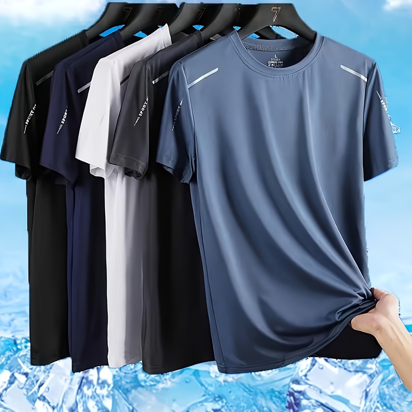 TEMU 5개 남성용 속건성 운동 티셔츠 - 통기성 좋은 흡습 라운드넥 반팔, 다양한 색상 옵션, 헬스장 및 여름 활동에 적합, 피트니스 상의, 야외 스포츠, 헬스 활동. 여름 선물로 좋고, 남성을 위한 최고의 선물