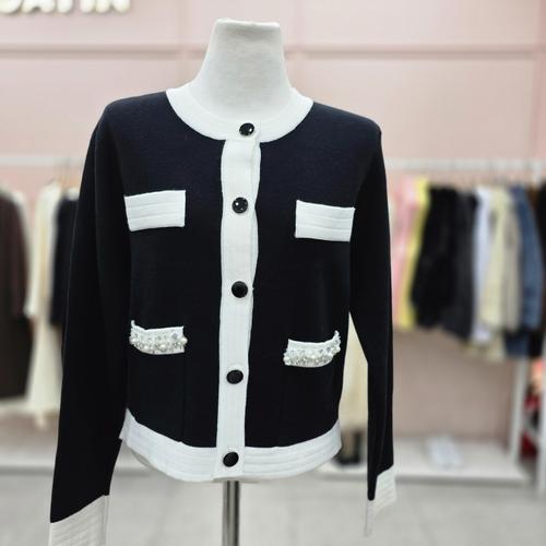 [샤틴]진주라인배색 퍼 숄 가디건S254K953A06