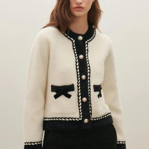 [샤틴]라인배색 리본포인트 니트가디건S344K971A05_JK