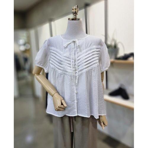 [르샵] 레이스 라인 프릴 반팔 블라우스 (DQ2BA022A)