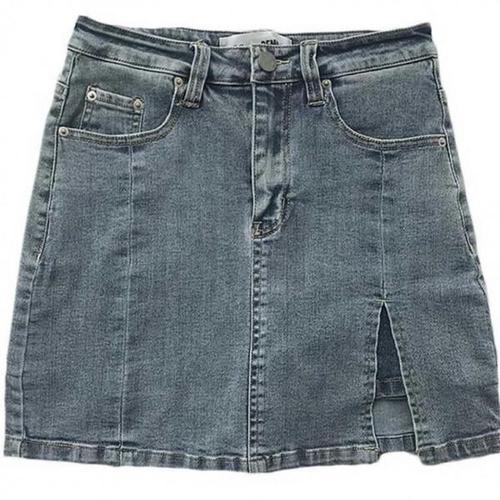[오노마] ONM 여성 A라인 데이트룩 데님 하이웨이스트 슬릿 청치마