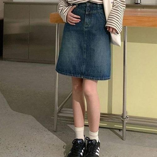 [신상오픈런]20대 여성 하이웨스트 A라인 탄탄한 데님 미니스커트