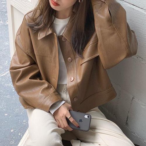 친환경 긴 소매 가을 인조 가죽 재킷 짧은 의류 여성용 봄 신상 PU 퍼 재킷 인조 포켓