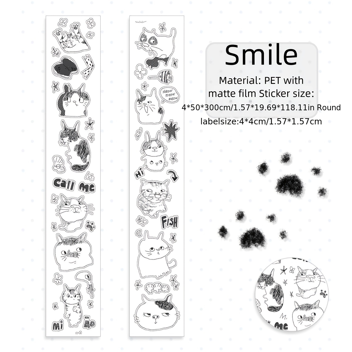TEMU 1롤 귀여운 고양이 PET 테이프 - 발자국 & 고양이 얼굴 디자인 - 스크랩북, 다이어리, 플래너, 기기, 사무실 & 파티 장식용 - 쉽게 붙이고 떼는 접착 테이프
