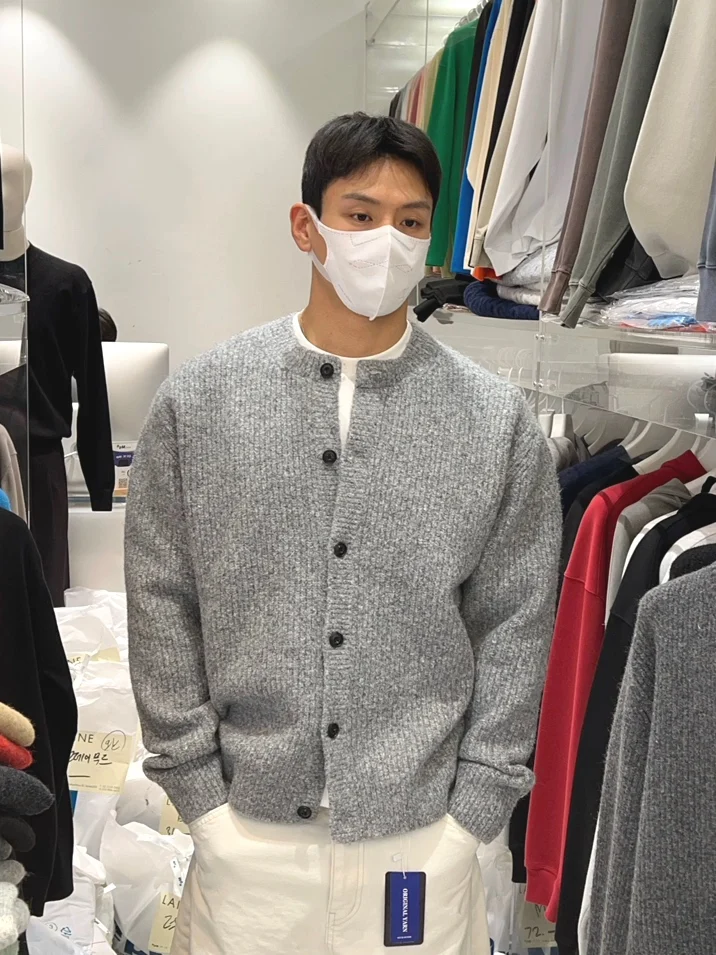동대문 니트 가디건 남성용 라운드넥 버튼업 스웨트셔츠 아우터웨어 울 자켓 텍스처 트렌디 루즈핏 캐주얼 통기성