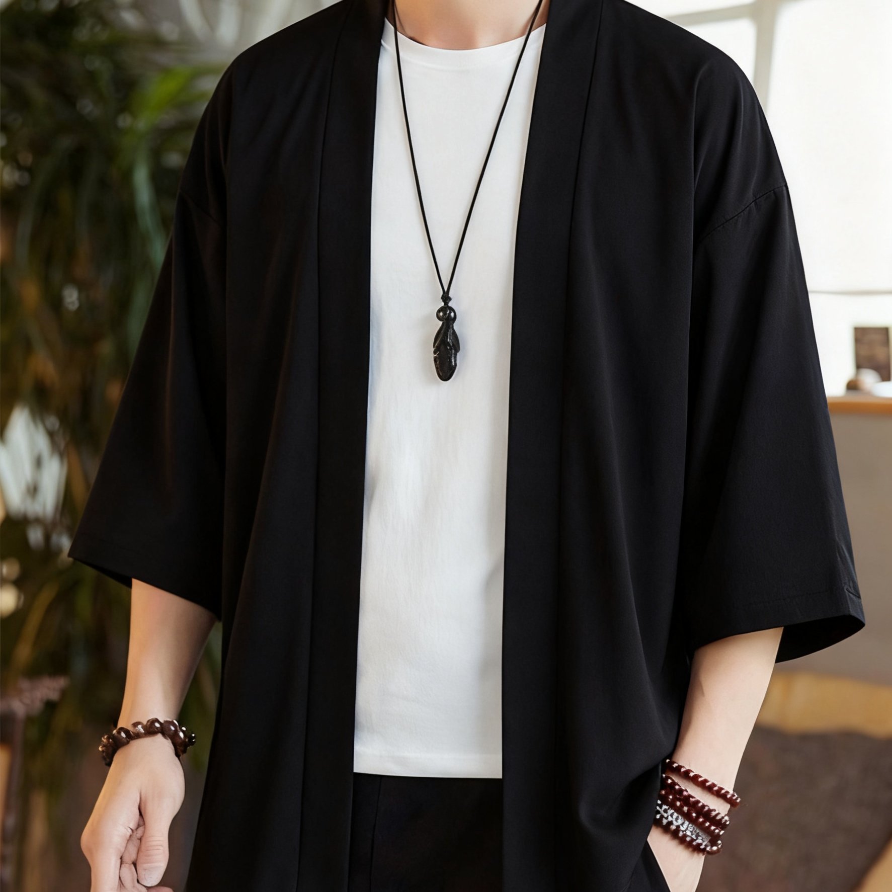 TEMU 남성용 기모노 스타일 캐주얼 가디건 셔츠, 100% 소재, 루즈핏과 단색으로 스타일링 가능, 캐주얼한 감성 표현. 가벼운 원단이며, 사이즈 가이드를 주의 깊게 참조하십시오, 중국 사이즈, 중국 사이즈