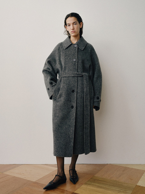 스텝어라운드 Merino Wool Balmacaan Loose Fit Belted Coat_GREY 1050169