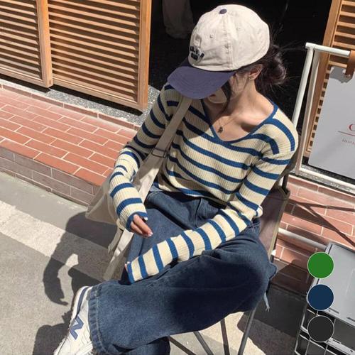 [센트럴몰]캐주얼 니트 브이넥 스트라이프