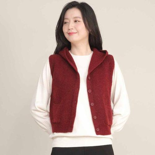 [애비뉴투지]엄마옷 도톰한 후드 니트 단추 주머니 여성 봄 가을 겨울 숏 조끼 V02655