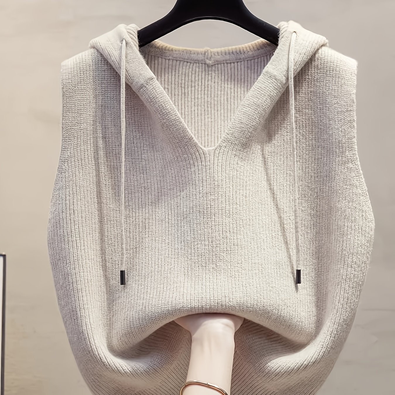TEMU 우아한 후드 조끼 | 여성용 민소매 조끼, 봄/여름/가을, 단색, 브레이드 디테일, 고품질, 부드럽고 편안함, 다용도 레이어링 탑