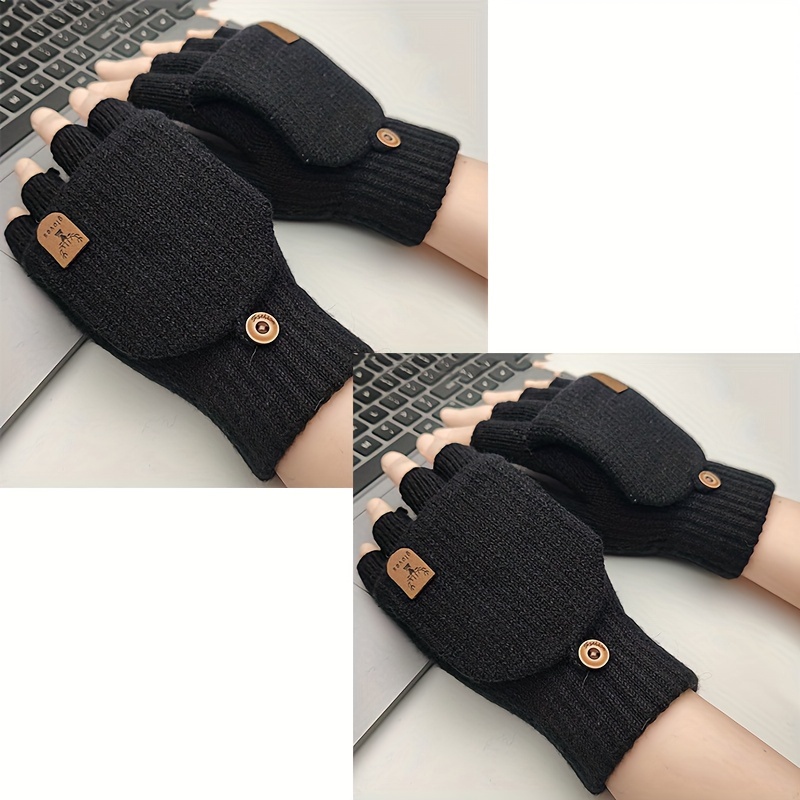 TEMU 남녀 공용 두꺼운 벨벳 안감 아웃도어 따뜻한 장갑 - 스타일리시한 손가락 없는 디자인, 탄성 있는 핏으로 가을 & 겨울 야외 활동에 적합