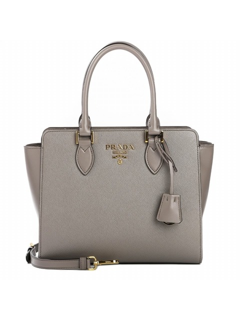 프라다 금장 로고 사피아노 레더 토트백 그레이 1BA113 2EDV F0K44