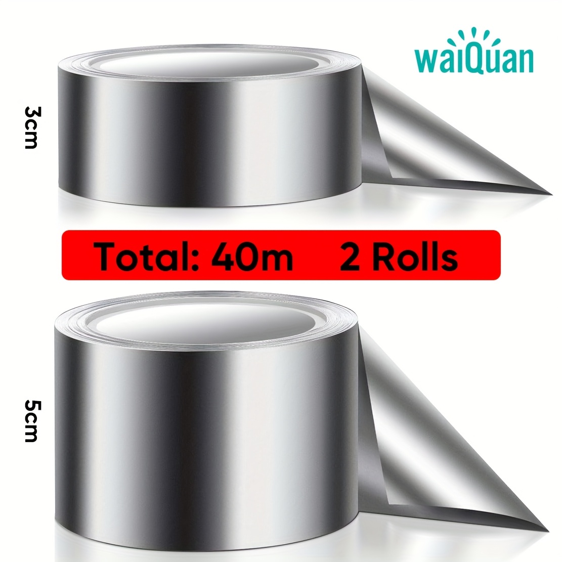 TEMU 총 길이 40미터, 폭 3cm 및 5cm, WALQUAN 포일 테이프 2롤 세트, 주방 싱크대 및 조리대용 고온 저항 방화 포일 실링 테이프, 싱크대 및 파이프 모서리 밀봉용 자가 접착 테이프